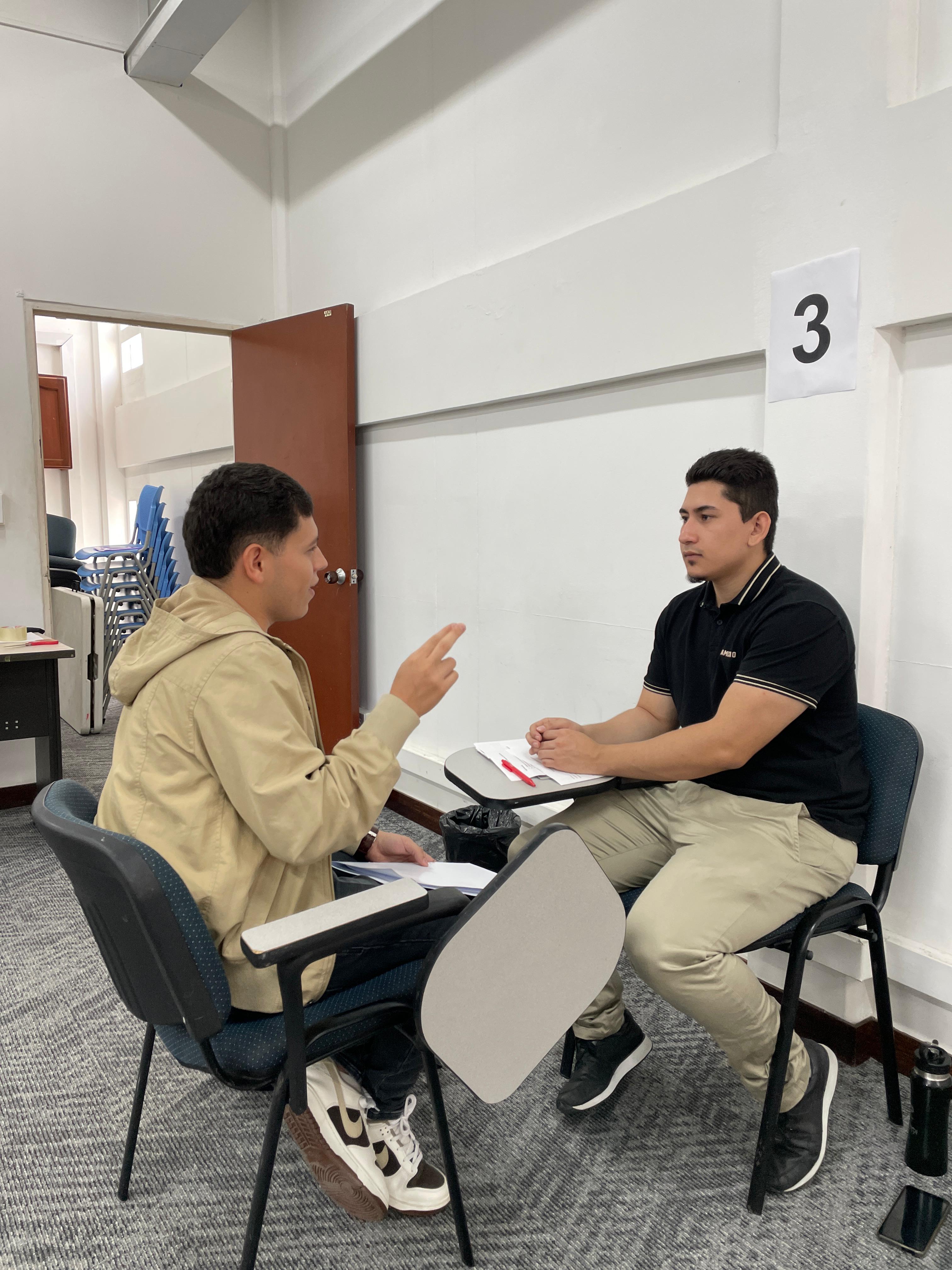En las entrevistas individuales, se simuló un encuentro directo, con preguntas que permitieron medir la capacidad de respuesta de los entrevistados, claridad en la comunicación, dominio del lenguaje corporal y seguridad personal. Este ejercicio estuvo acompañado de retroalimentación de sus hojas de vida y concejos para mejorar su desempeño en futuros escenarios reales.
